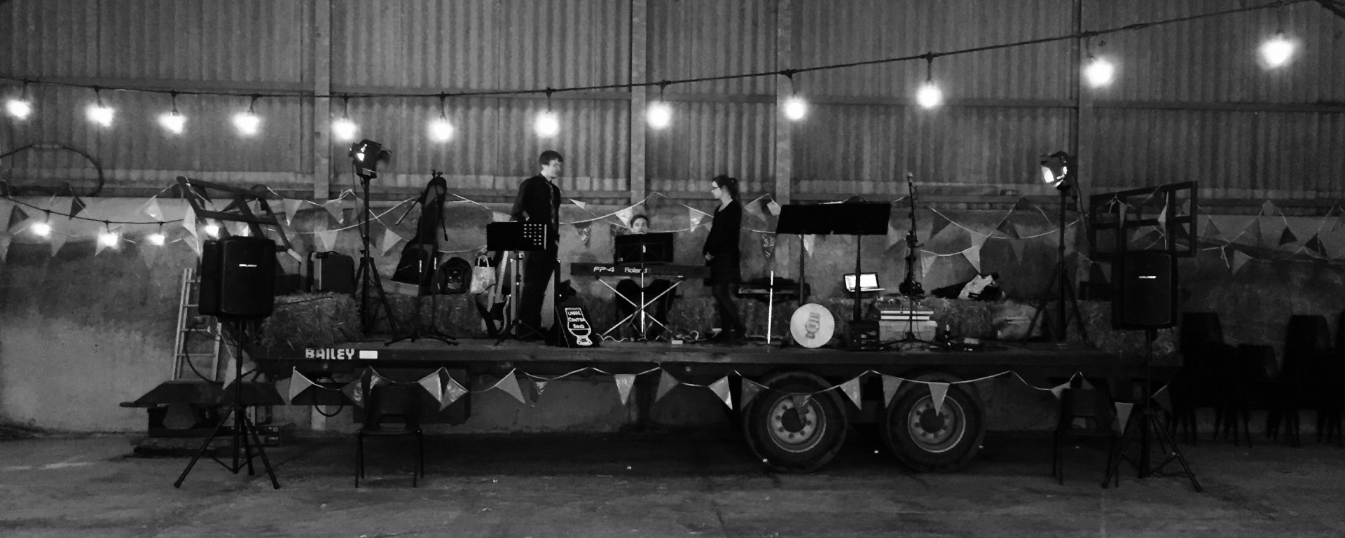 Photos Barn Dance for Llancarfan Society A real barn to play in tonight. Great fun particularly when it’s not freezing cold! Real straw bales for the mixing desk as well! Share this:Tweet Click to print (Opens in new window) Print Click to email a link to a friend (Opens in new window) Email Like Loading...